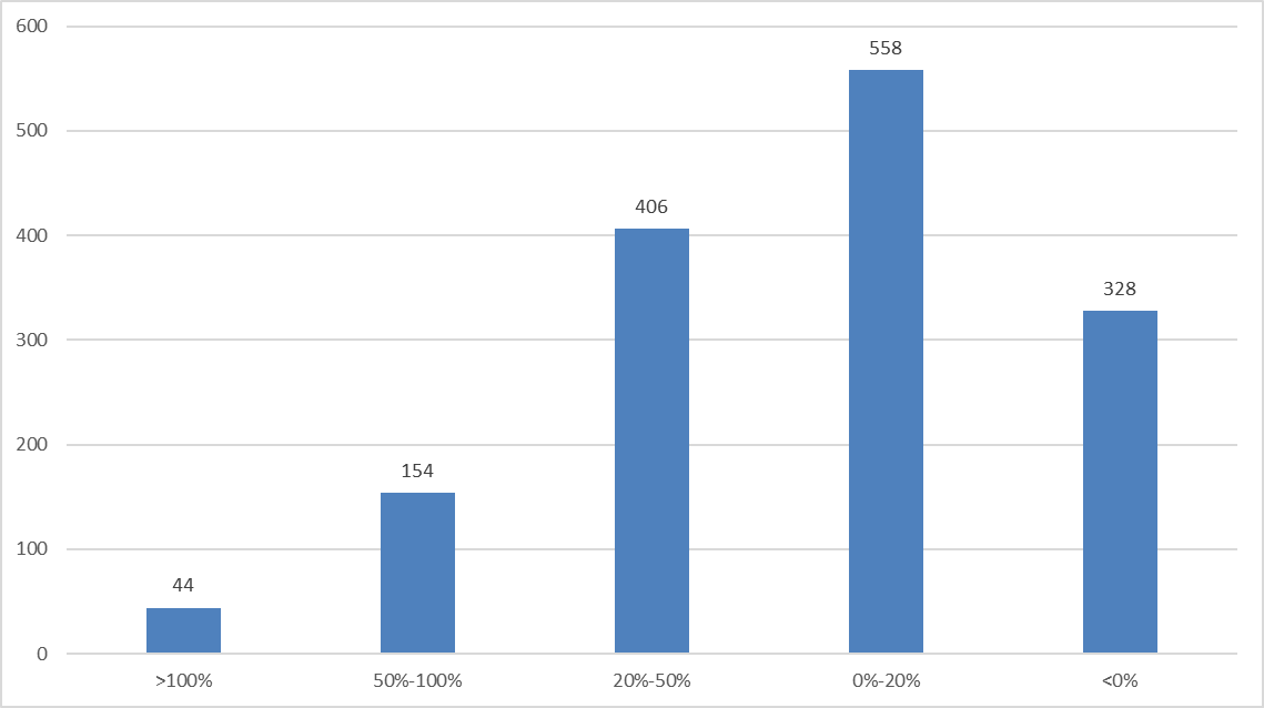图:今年下半年以来被私募调研的个股涨跌分布情况(截至10月15日)