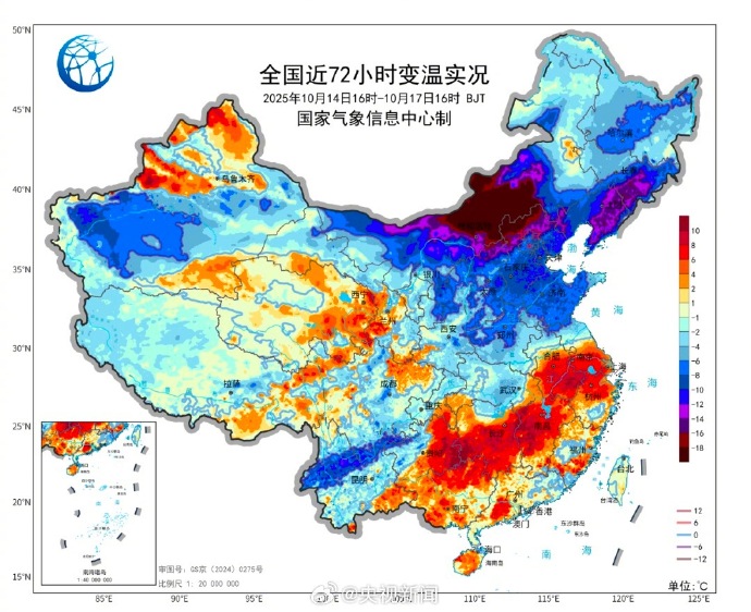 今年下半年以来最强冷空气正在影响我国,今天(10月17日)“冷气”已在淮河流域一带集结。